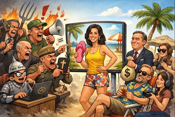 O comentário do escritor Palmarí de Lucena analisa a reação da extrema direita à campanha das Havaianas com Fernanda Torres como sintoma do empobrecimento do debate público. Um anúncio comercial trivial é artificialmente convertido em ameaça política, revelando torpeza intelectual e incapacidade de lidar com temas reais. “Ao criar inimigos imaginários, esses grupos acusam censura […]