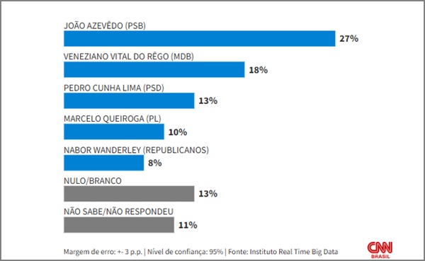PESQUISA BIG DATA João Azevedo lidera com folga disputa pela primeira vaga ao Senado, traz CNN