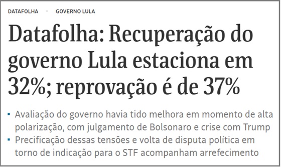 A mais recente pesquisa DataFolha, aparentemente, revela estagnação nos índices de desaprovação do presidente Lula que, em pesquisas anteriores, mostravam tendência de queda.