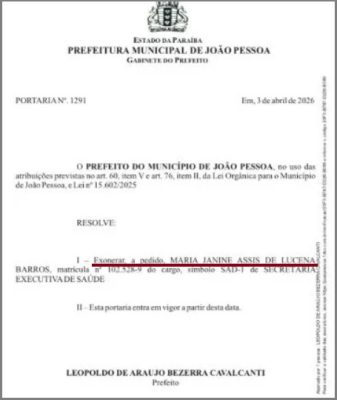Segundo publicação no Diário Oficial do Município, a exoneração se deu “a pedido”. Comentários de bastidores indicam que Janine deverá coordenar ações da campanha de Cícero Lucena (MDB) ao Governo.