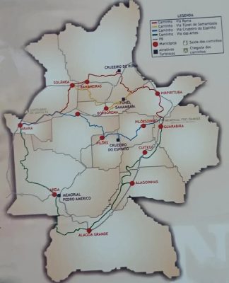 Cada rota conta a mesma história por outra estrada. A Via das Artes sai de Guarabira, Cuitegi e segue por Alagoinha, Alagoa Grande, Areia e Arara. O Cruzeiro do Espinho passa por Pilõezinhos e Pilões até Arara, com Solânea como divisa do território do Memorial do |Padre Ibiapina. O Túnel de Samambaia usa o antigo caminho do trem: Guarabira, Pirpirituba, Túnel Samambaia, Borborema, Serraria e Arara. Na prática, o caminho aberto e trabalhado foi o Cruzeiro de Roma, por já contar com estrutura de apoio: bares, restaurantes e hospedagem. O roteiro previu pernoite inicial no Cruzeiro de Roma, depois Bananeiras, e chegada final em Arara.