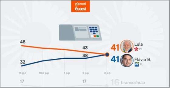 Nesta terça-feira, 11 de março, a Quaest divulgou novos números. O empate que antes era técnico passou a ser matemático: 41% a 41%.