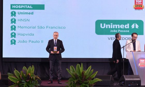 A Unimed João Pessoa conquistou, pela 16ª vez, o Prêmio Top of Mind nas categorias “Plano de Saúde” e “Hospital”, reconhecimento concedido às marcas mais lembradas pelos consumidores paraibanos ao longo de 2025. A premiação, promovida pelo Sistema Correio de Comunicação, foi entregue nesta quarta-feira (3), em João Pessoa.